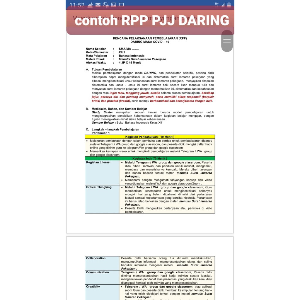 Rencana pelaksanaan pembelajaran (rpp) daring bahasa indonesia kelas 7 semester ganjil dan genap kurikulum 2013. Dibuat sesuai edaran kemendikbud nomor 14 tahun . Rpp daring bahasa indonesia kelas 7 semester genap menjadi incaran para guru dimana kebijakan bapak presiden dan nadiem makarin ditengah new normal, Contoh rpp daring bahasa indonesia. Sesuai dengan judul posting, kali ini penulis kembali akan berbagi selembar contoh rpp pjj moda daring mata pelajaran bahasa indonesia smp kelas .